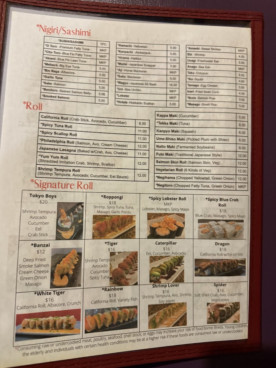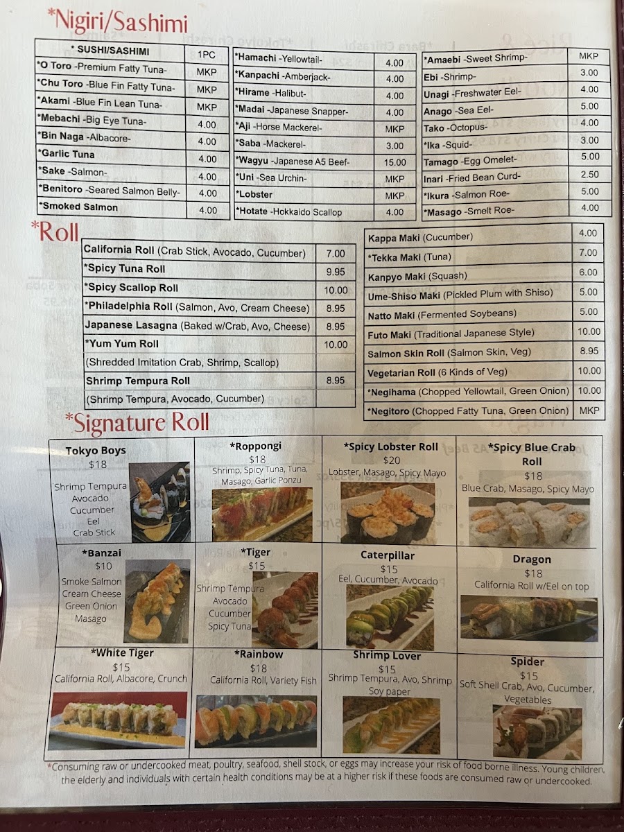 Tokyo Boys Menu