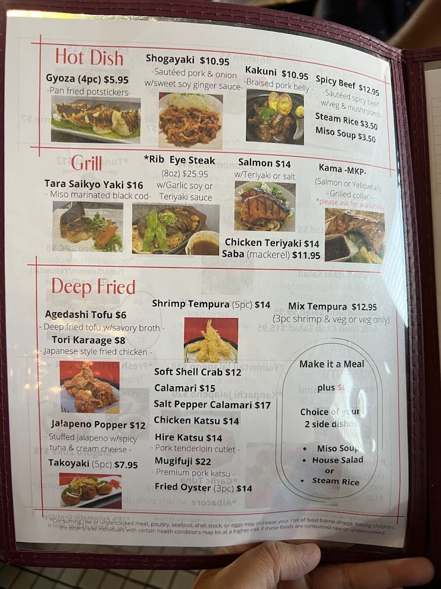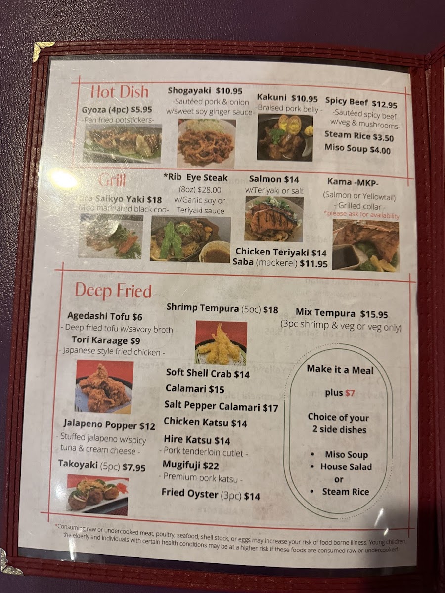 Beverages include traditional Japanese drinks such as sake and Japanese brewed beverages. The menu is suitable for casual dining occasions where guests can enjoy light meals, sushi selections, and more substantial bowls. Orders can be made à la carte, offering flexibility for quick bites or full meals.